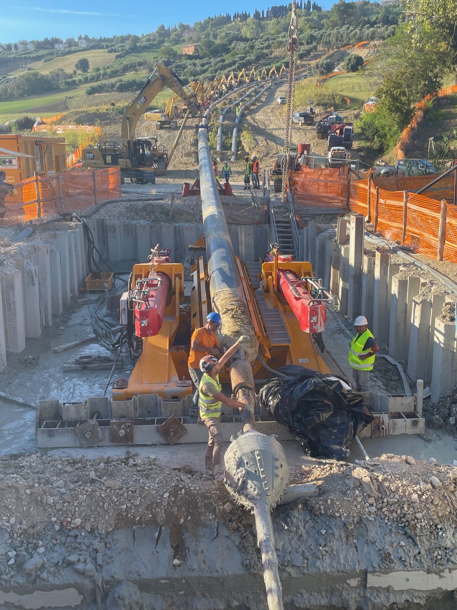 Nel progetto di rifacimento del metanodotto Recanati – Chieti DN 650 (26’’) Dp 75 bar – Lotto 2 di Snam Rete Gas, Festa ha completato con successo due attraversamenti di 1000 e 1200 metri utilizzando la tecnica di Horizontal Directional Drilling (HDD). Una scelta rivelatasi vincente rispetto al Microtunneling (MT) che aveva riscontrato difficoltà tecnico-operative tali – la natura del sottosuolo in primis – da determinare la sospensione delle attività.
